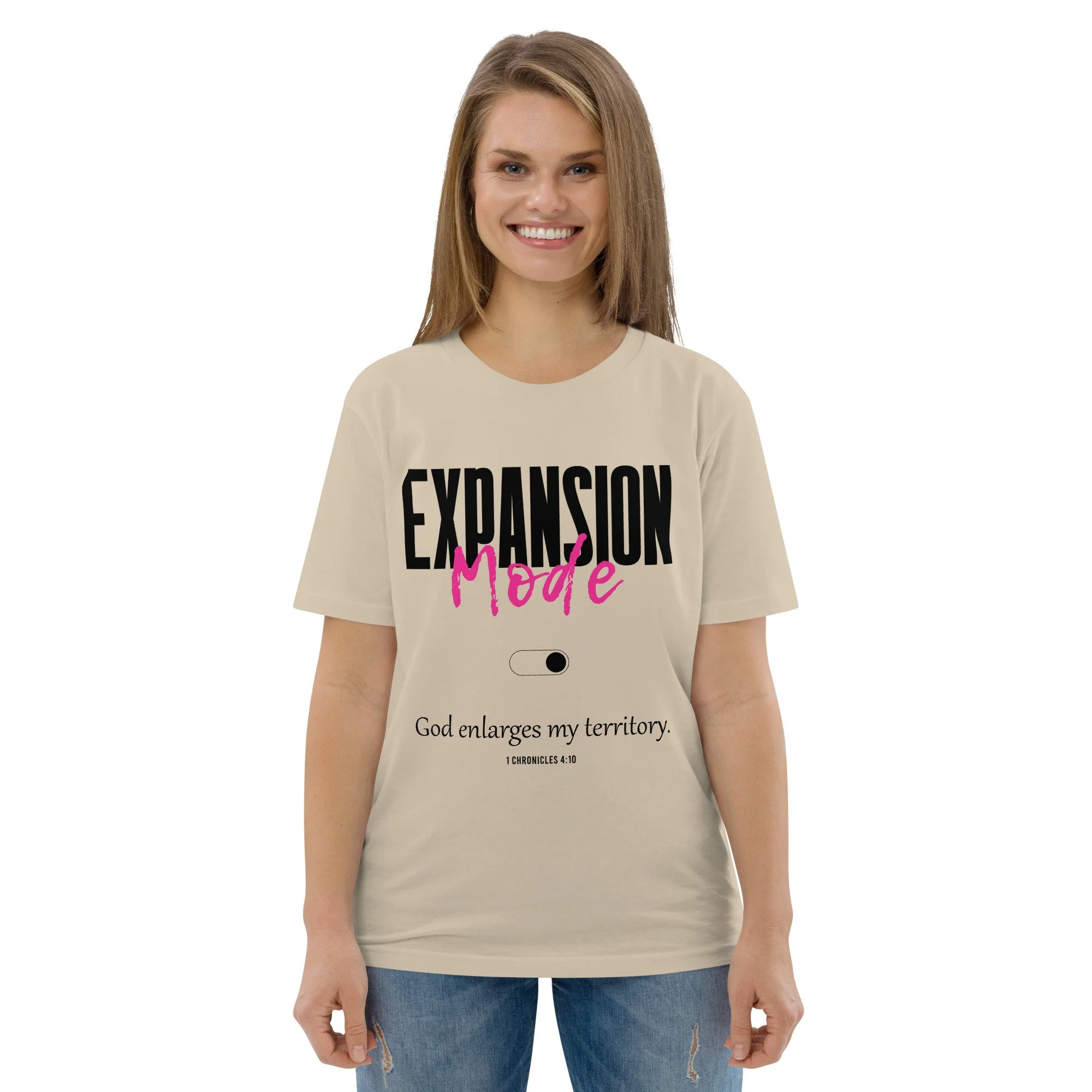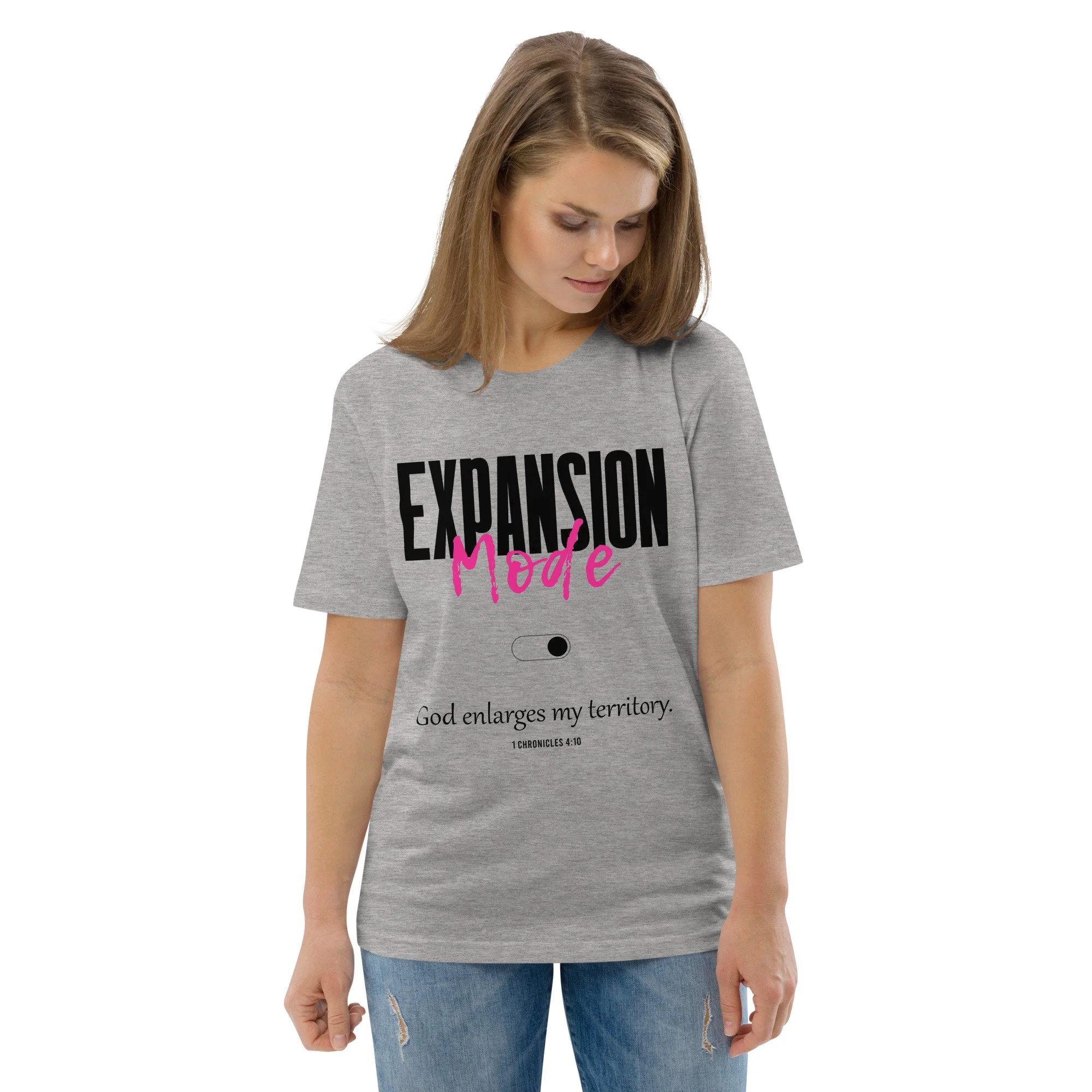 The Premium Expansion Mode Unisex Organic T-Shirt is a faith-filled reminder that God is still increasing your capacity, enlarging your territory, and preparing you for more.